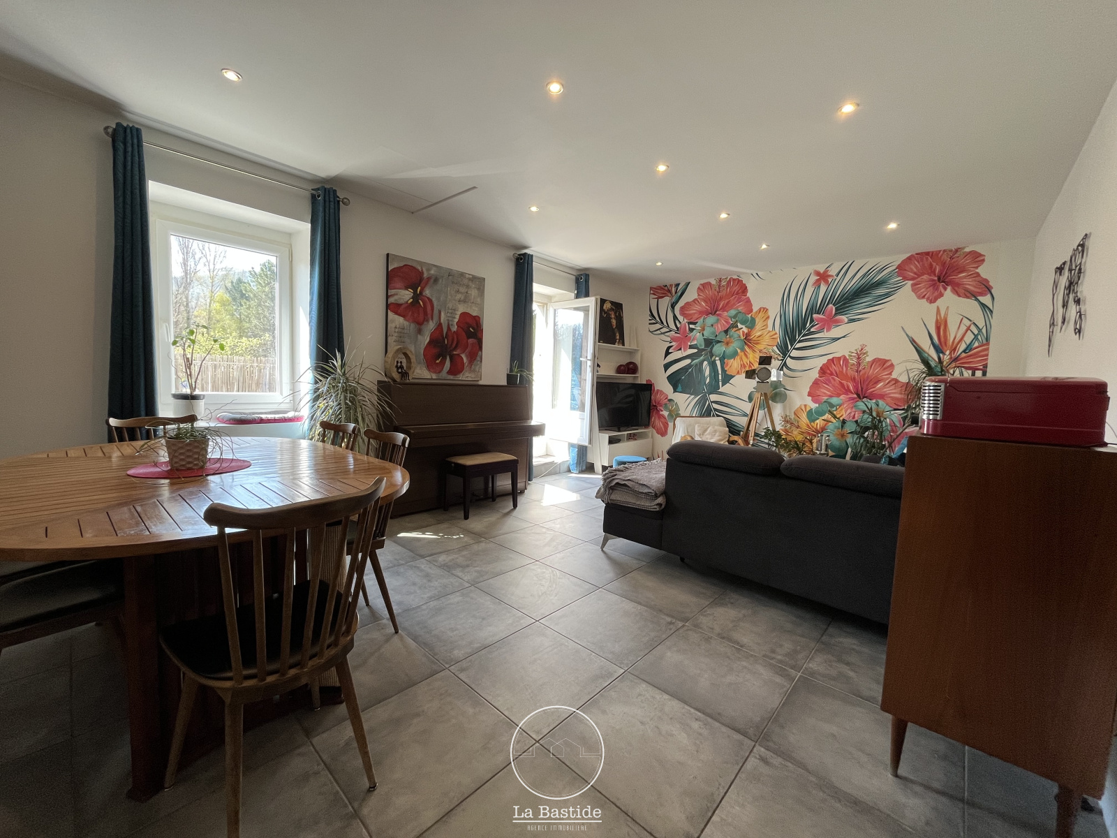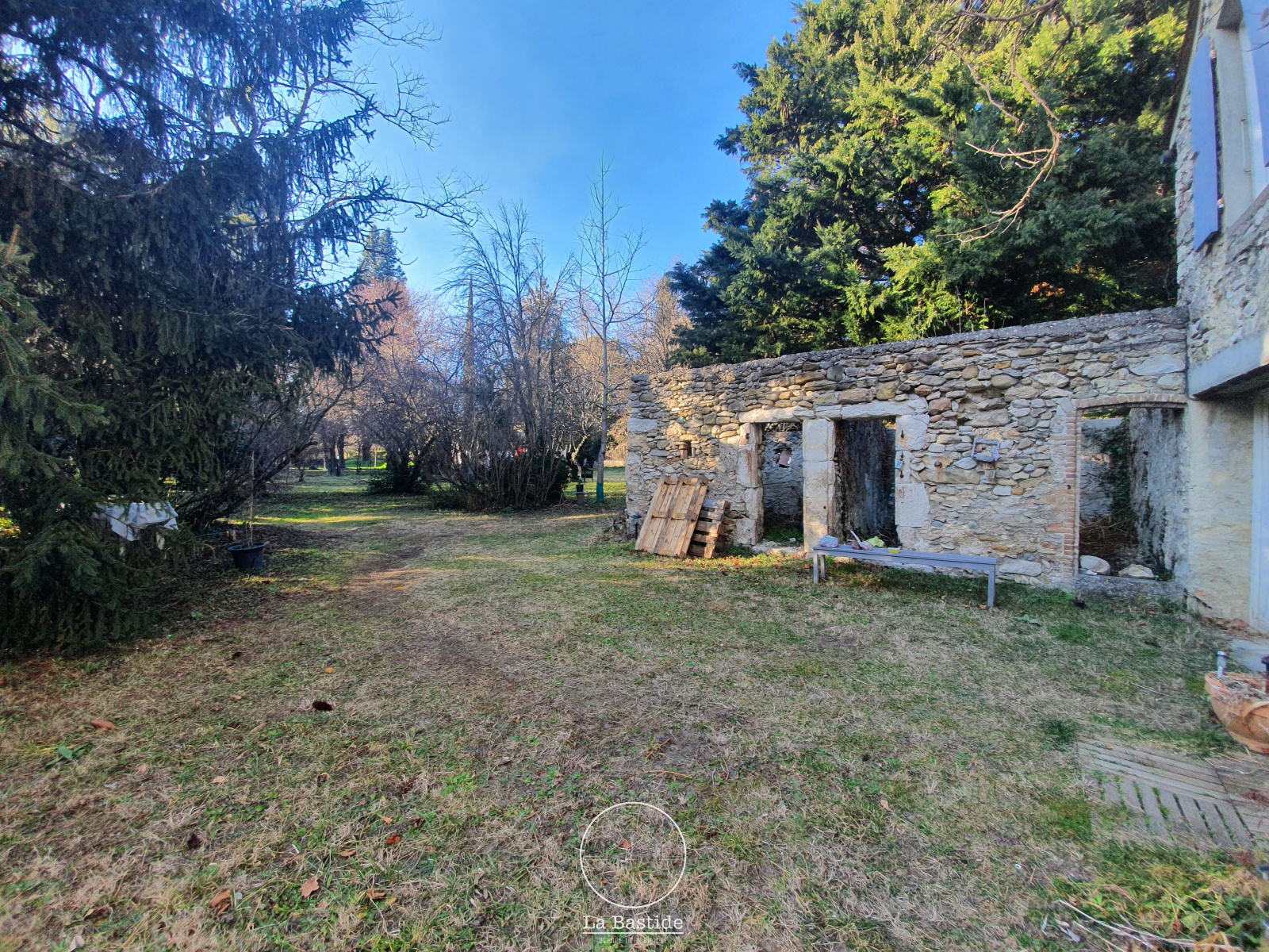 NOUVEAUTÉ LA BASTIDE AGENCE IMMOBILIÈRE. Dans le charmant village de Poët-Laval, à quelques minutes de Dieulefit, venez visiter cette bâtisse en pierres d'environ 150 m² dont 90 m² habitables sur un terrain clos et arboré de 2 492 m². Elle se compose d'une habitation principale rénovée et de dépendances. Au premier niveau, vous découvrirez un hall desservant une pièce de vie plein sud d'environ 27 m² donnant sur une terrasse d'environ 21 m², une cuisine séparée, 2 chambres spacieuses d'environ 16 m², une salle de bains et un WC indépendant. Au rez-de-chaussée, les dépendances d'environ 62 m² se composent de 4 pièces à rénover. Un garage attenant de 42 m² complète ce bien.