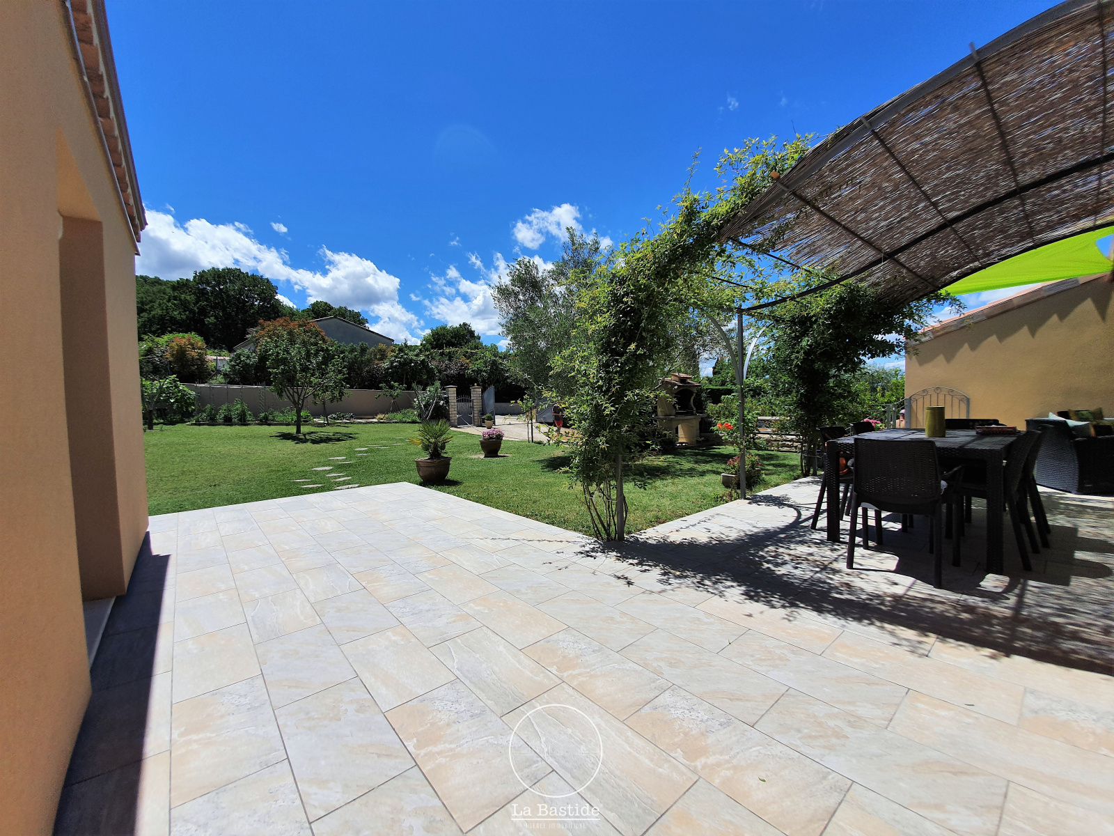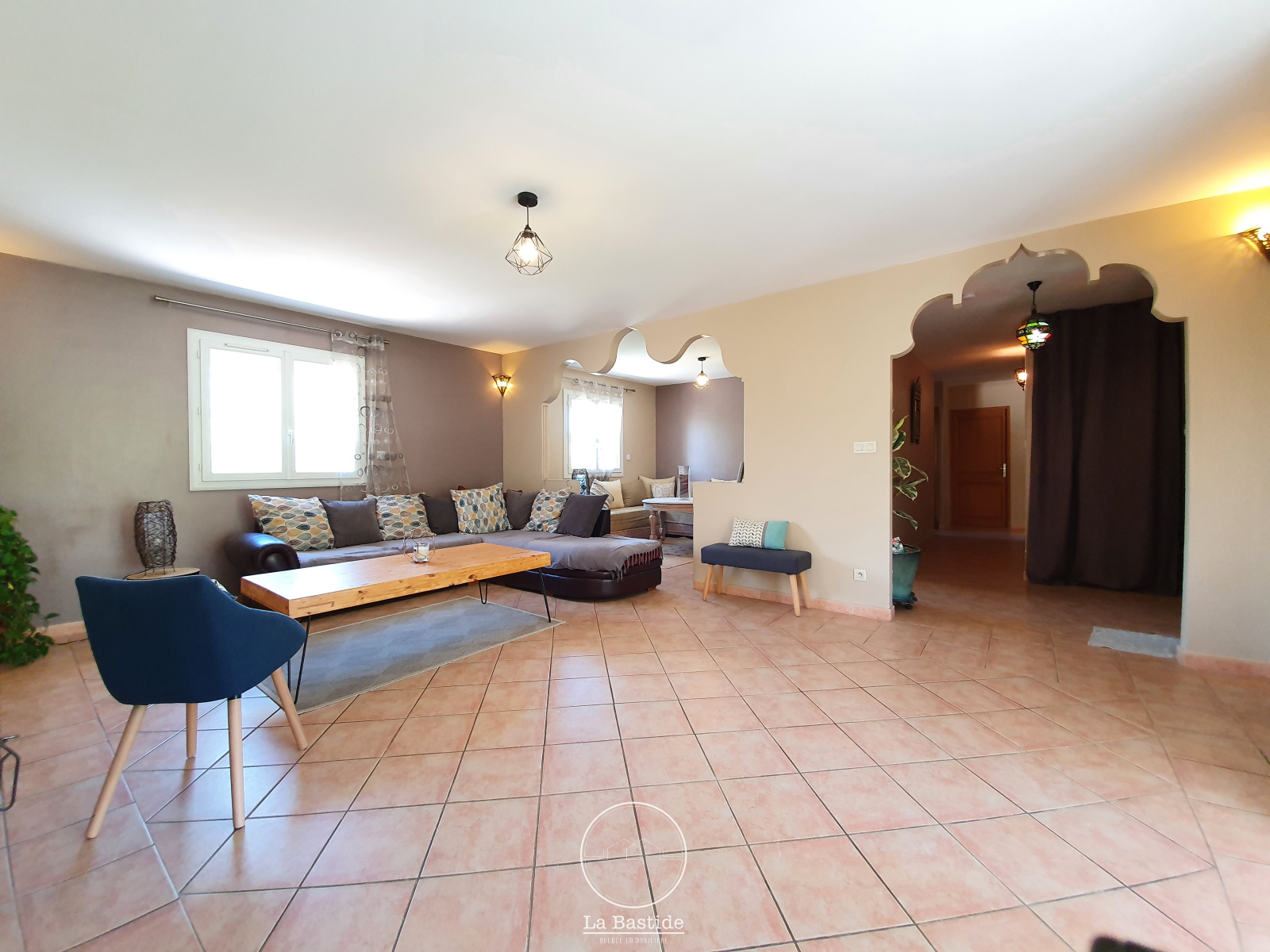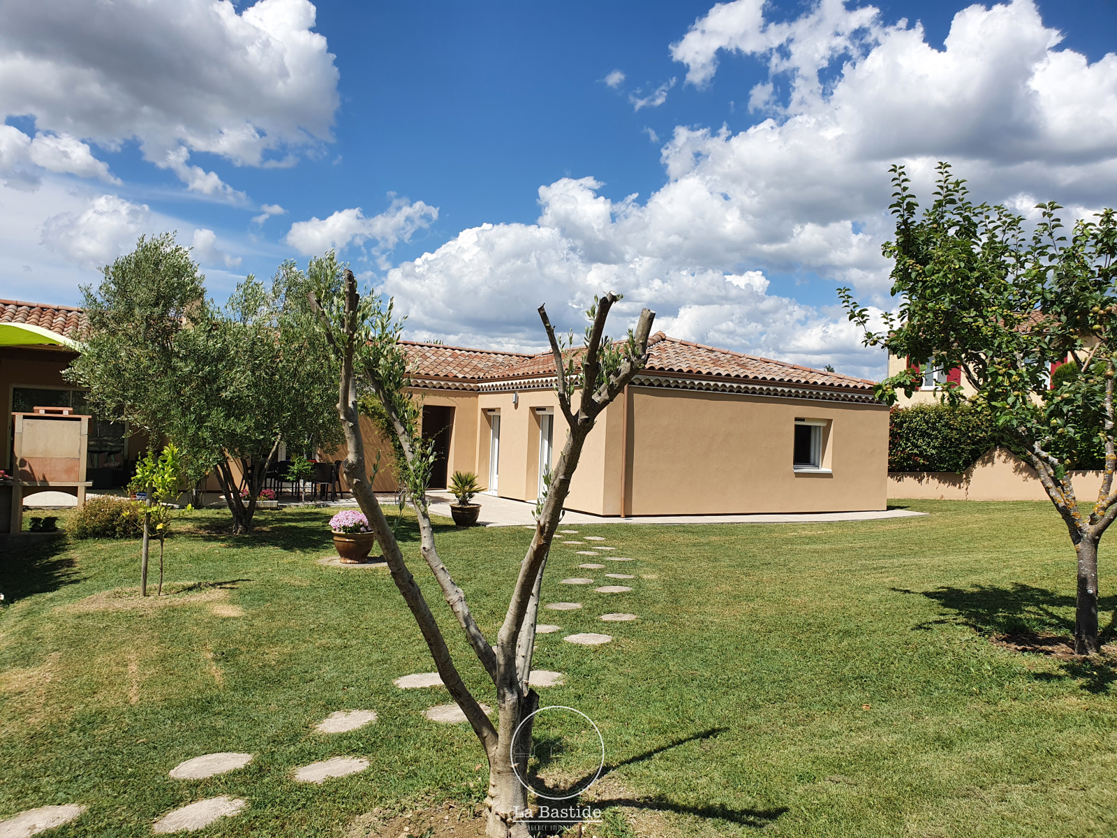 EXCLUSIVITÉ LA BASTIDE AGENCE IMMOBILIÈRE. Sur la commune de Charols, à proximité immédiate des commodités (écoles, commerces...) et à seulement 20 minutes de Montélimar, venez découvrir cette lumineuse maison de plain-pied d'environ 154 m² sur un terrain clos et arboré de 1152 m². Elle se compose d'un hall d'entrée avec placard, d'un double salon d'environ 40 m² avec son pôele à bois et d'une spacieuse cuisine équipée d'environ 28 m² donnant sur une terrasse couverte. Coté nuit, vous découvrirez un wc indépendant, une salle d'eau avec meuble double vasque d'environ 8 m², 5 chambres dont 2 avec leur porte fenêtre donnant directement sur le jardin et un dressing d'environ 6 m². Un grand garage d'environ 34 m² et une mezzanine finiront de vous séduire. Cette maison construite en 2005 a eté recemment rénovée : isolation par l'extérieur, menuiseries doubles vitrages, volets roulants solaires, chauffage par pompe à chaleur, ballon thermo-dynamique. Le jardin piscinable est agrémenté de nombreux arbres fuitiers (cerisier, poirier, abricotier) et d'une spacieuse terrasse carrelée. Prestations complémentaires : grand vide sanitaire isolé, murs intérieurs en briques, portes en chênes, fibre optique, eau du Rhône, portail éléctrique, abri bois, grande allée gravillonnée... Pour tous renseignements complémentaires, contactez l’agence immobilière LA BASTIDE au 04.75.90.10.23